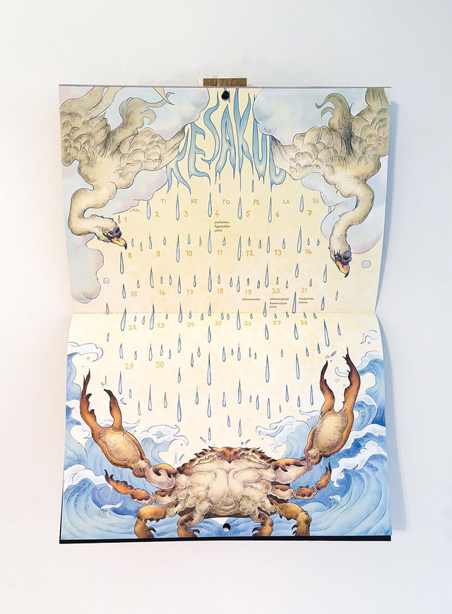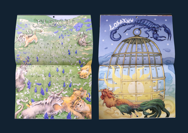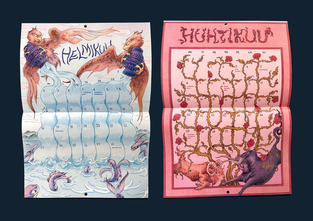 Kalenteri on nidottu ja siinä on reikä ripustusta varten. Avattuna kalenteri on A3-kokoinen ja suljettuna A4-kokoinen. Näytöllä värit voivat erota fyysisen tuotteen väreistä. Tilaukset pakataan ja postitetaan 1-3 päivässä. Jos tilaat kalenterin kuitenkin ennakkotilattavien tuotteiden kanssa, niin kaikki lähetetään yhdessä vasta helmikuun loppupuolella. Kalenterin voi nähdä kokonaisuudessaan täältä (huom. videossa englanninkielinen versio): https://www.instagram.com/p/DS5W76hDRt3/