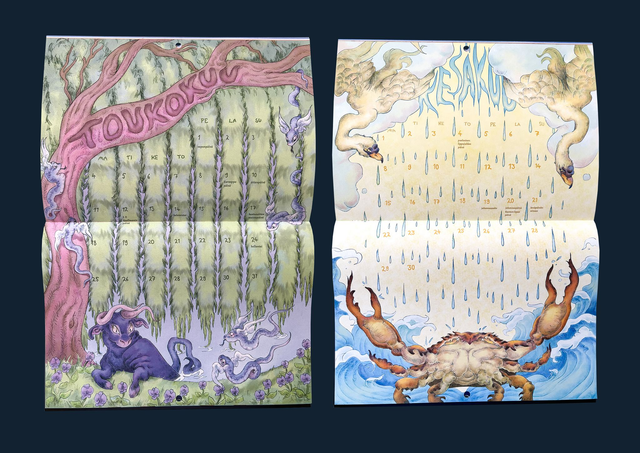 Kokonaan kuvitettu 2026 seinäkalenteri, joka pohjautuu Eläinradan horoskooppimerkkeihin. Kansipaperi on 250 gm2 matta paperia ja sisuspaperi 120 gm2 matta paperia (voi esim. kirjoittaa lyijykynällä päälle).