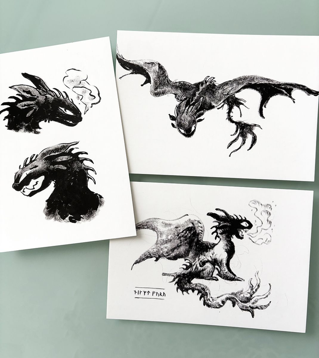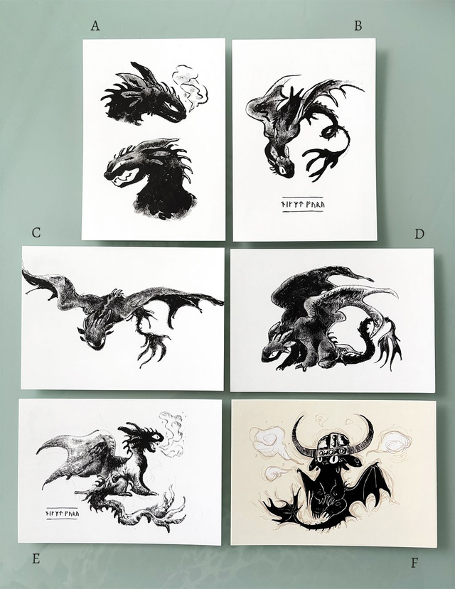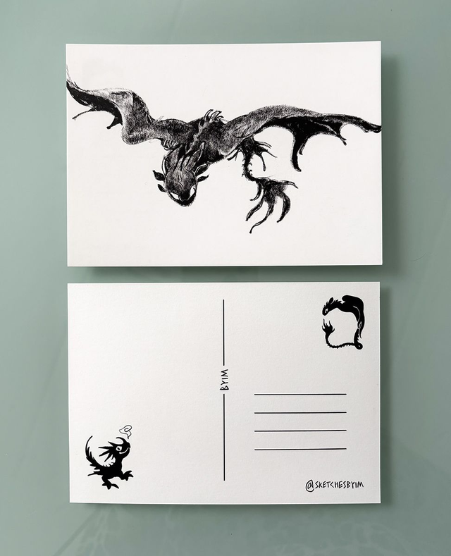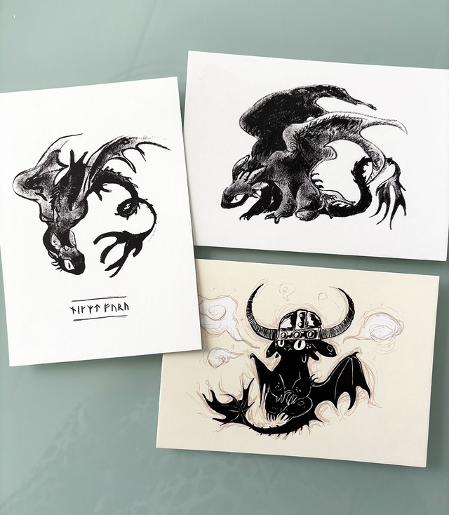 A6 sized two-sided postcards with my inked Toothless artworks.