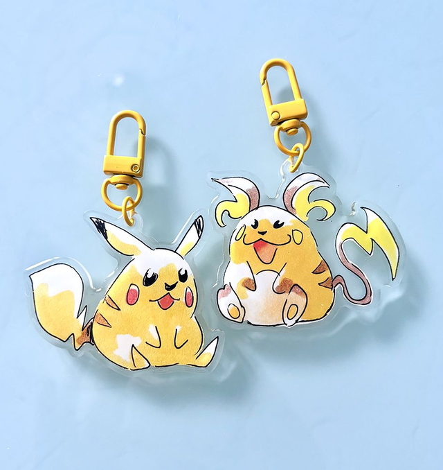 Sitting Pikachu and Raichu Charms